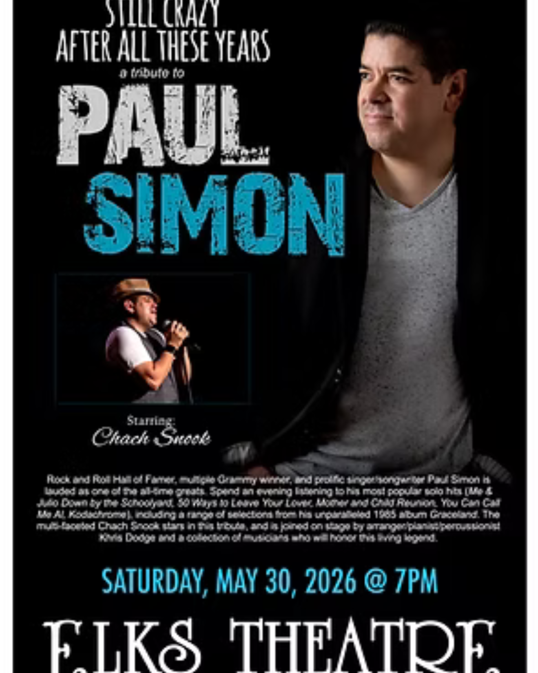Live performance of Still Crazy After All These Years – Paul Simon Tribute at Prescott Elks Theatre.