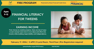 Part of the Financial Literacy for Tweens workshop series presented with Desert Financial Credit Union. April 21 session topic: Borrowing Responsibly. Free; registration required; space limited. Crystal Room |
